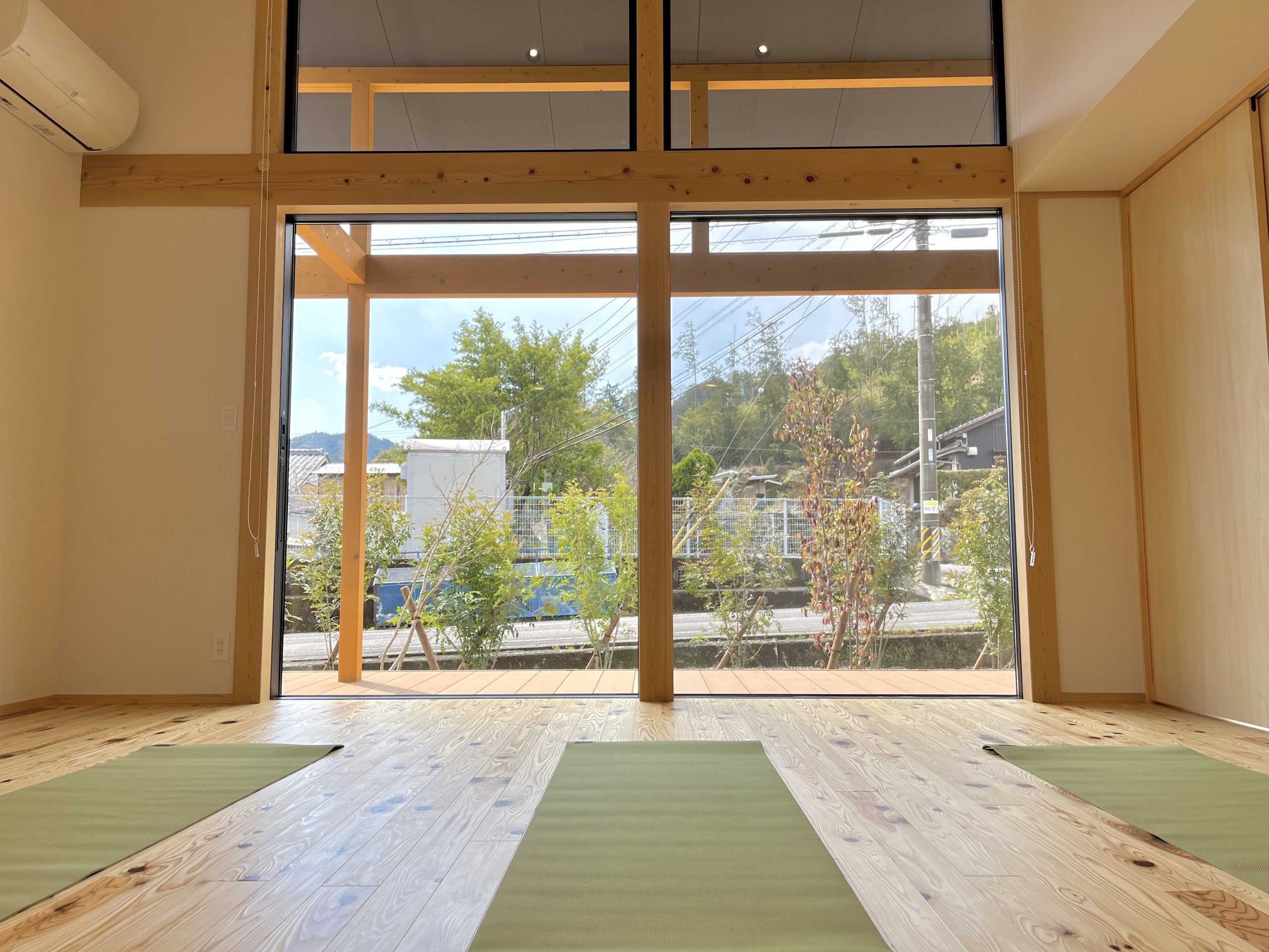 木のぬくもりを感じる小さなヨガ教室で
