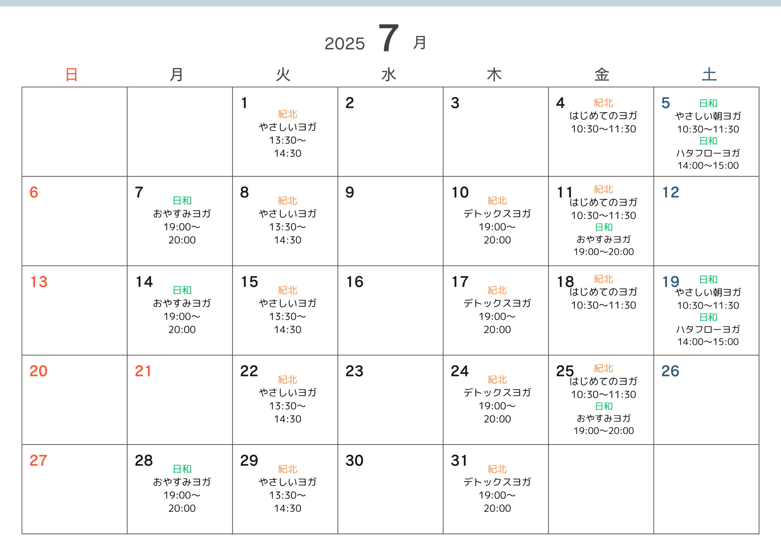 2025年7月スケジュール